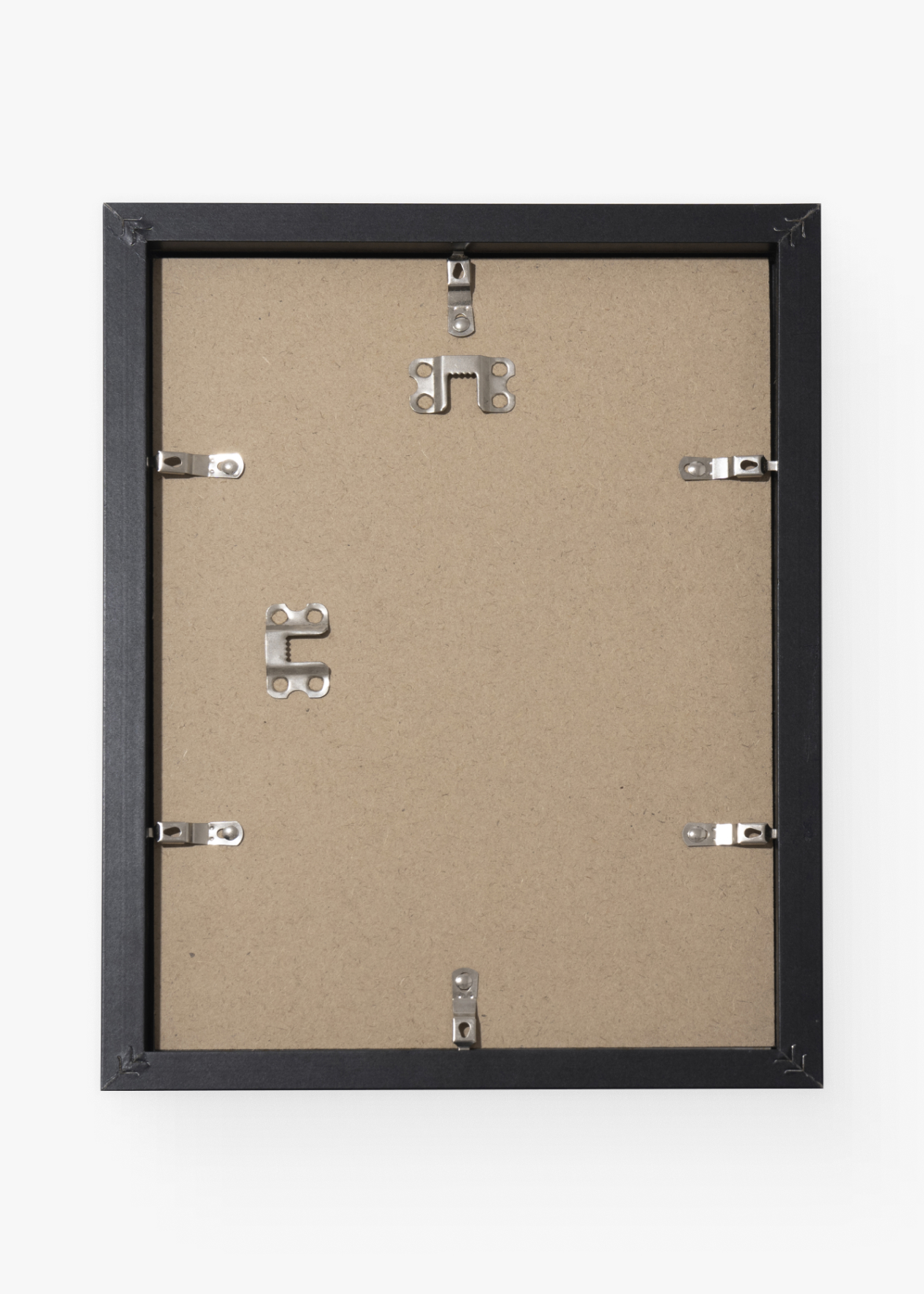 Zadní část rámu tvoří MDF (dřevovláknitá) deska, na které jsou připevněny kovové spony, sloužící zejména pro snadné otevření a umístění plakátu.