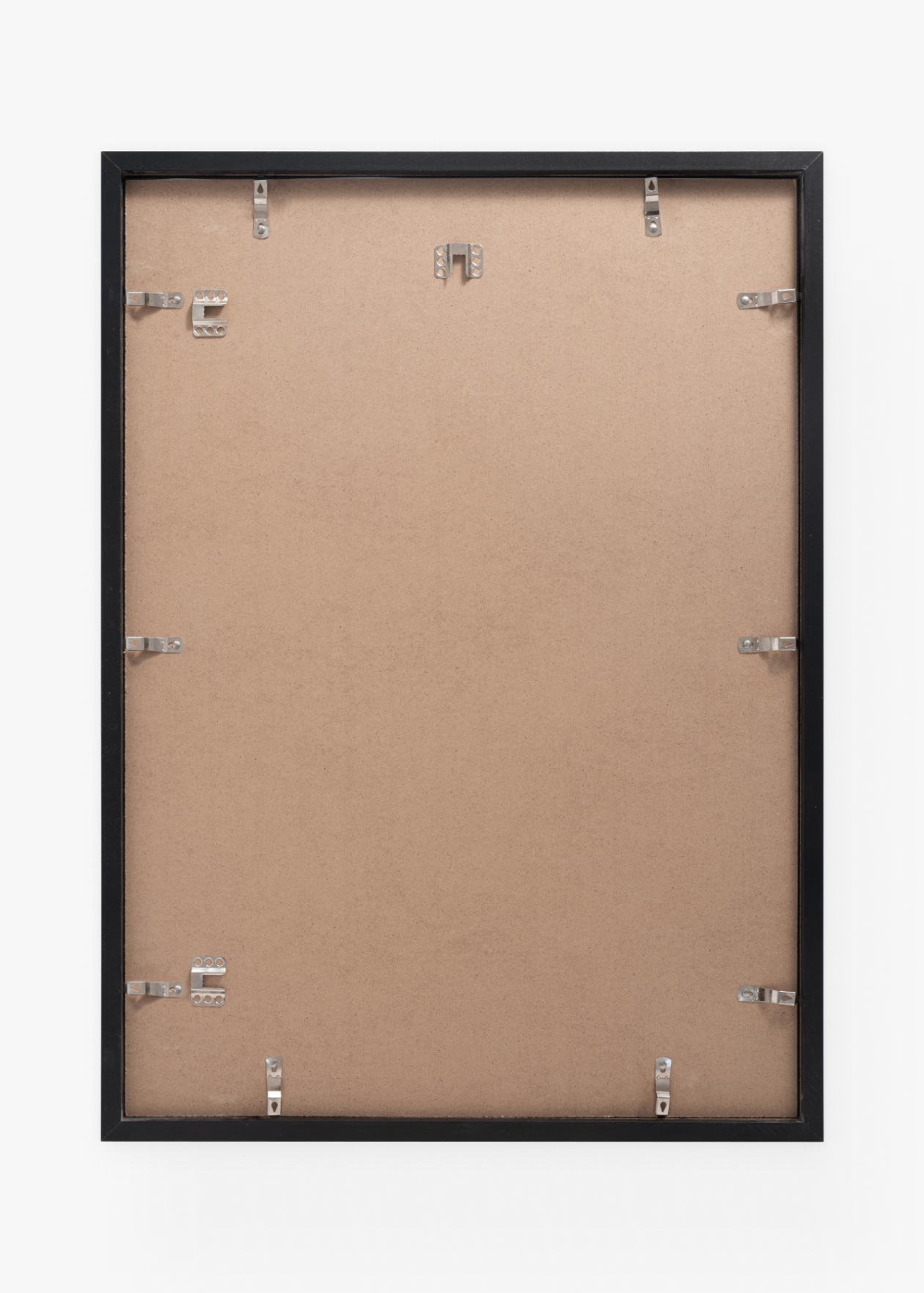 Zadní část rámu tvoří MDF (dřevovláknitá) deska, na které jsou připevněny kovové spony, sloužící zejména pro snadné otevření a umístění plakátu.