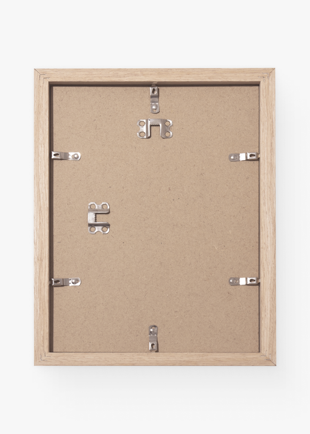 Zadní část rámu tvoří MDF (dřevovláknitá) deska, na které jsou připevněny kovové spony, sloužící zejména pro snadné otevření a umístění plakátu.