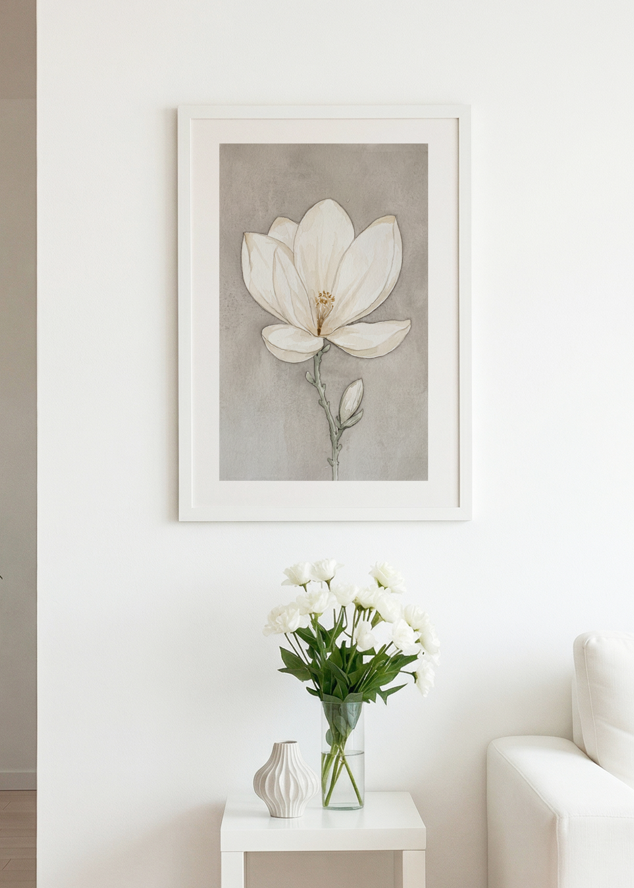 Vytvořte si doma oázu klidu s něžným plakátem z kolekce Esence květu. Nádherná akvarelová ilustrace velkého rozkvetlého květu v neutrálních zemitých a béžových tónech působí nesmírně harmonickým dojmem. Díky své jemné paletě barev se tento nadčasový květinový motiv dokonale hodí do interiérů v přírodním, boho nebo skandinávském stylu. Úžasně zútulní každou ložnici či obývací pokoj, a to ať už visí samostatně, nebo jako součást promyšlené obrazové stěny s dalšími plakáty z této vzdušné jarní série.