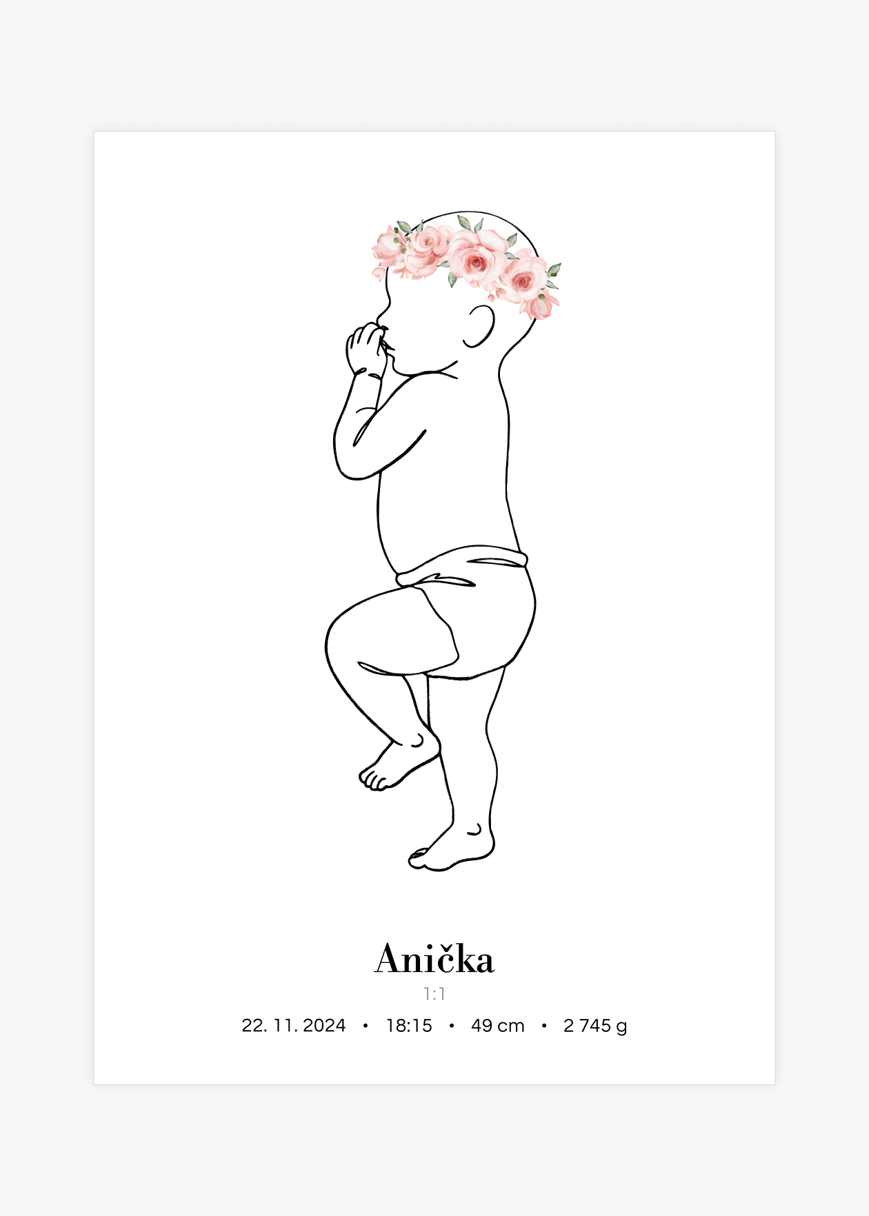 Plakát Miminko v životní velikosti (lineart) - na boku s květinovou korunkou
