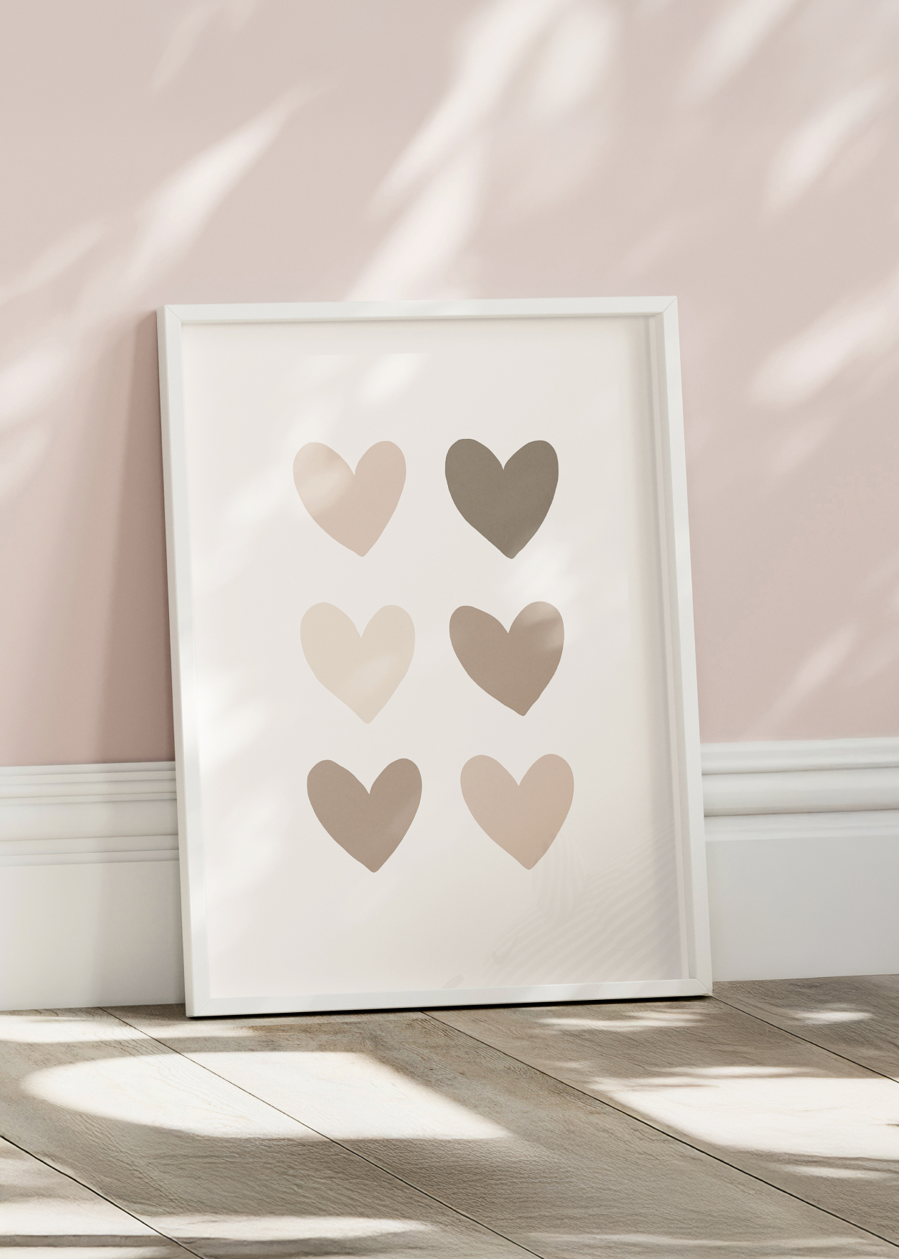 Dětský plakát s ilustrací srdíček v pastelových tónech na světlém pozadí. Tento plakát vám do domova vnese láskyplnou a hravou atmosféru. Skvěle se hodí do dětského pokoje, ložnice nebo dětského herního koutku. Perfektně ladí s dalšími plakáty z dětské kolekce.